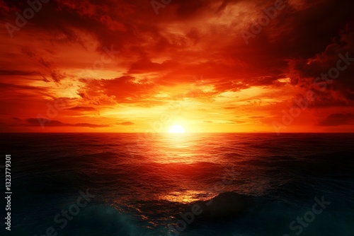 © Jessy Art, Obraz premium A photo of an endless savanna under a deep red sunset