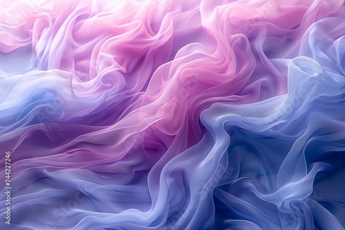 © Skiffcha, Obraz premium a photo of blue and purple smoke, in the style of gossamer fabrics, hyper-realistic water, light pink and light gray, matte photo, flowing fabrics. Generative AI.