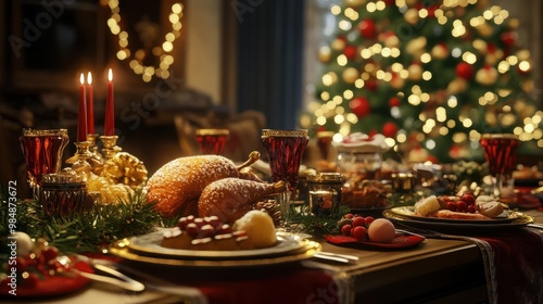 Fototapeta premium A photo of Christmas table with food