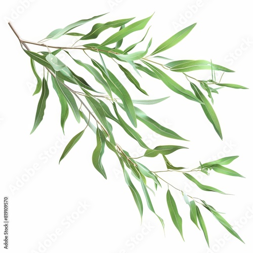 © Cheetose, Naklejka premium A photo of Willow leaf on the branch , super realistic , single object on center , Di-Cut PNG style , isolated on white background