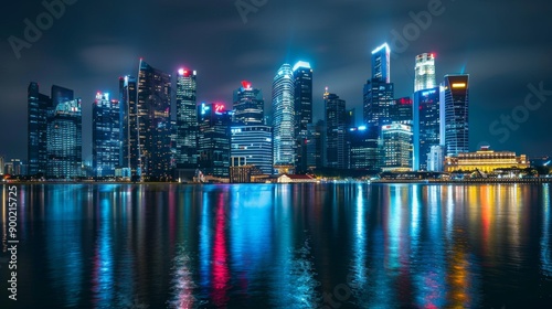 Naklejka premium A photograph featuring Night Urban Skyline, Contemporary City Design, by...
