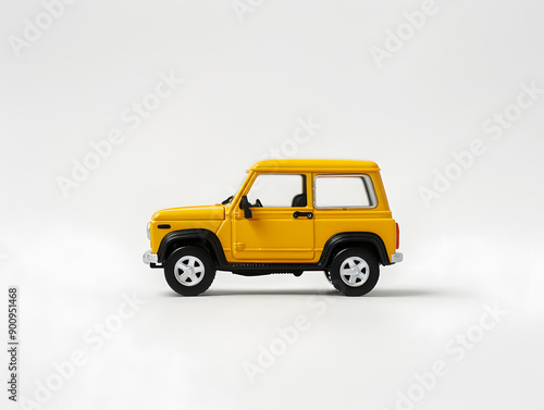 © Oleksandra, Fototapeta premium A photograph of a vintage yellow mini SUV with a classic design. Ideal for automotive, design, and retro themes, evoking nostalgia and minimalist style in transportation
