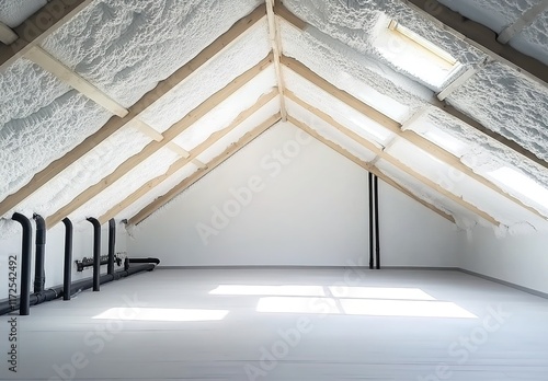 Obraz premium A photograph of an attic with polystyrene foam pouring from the roof, white...