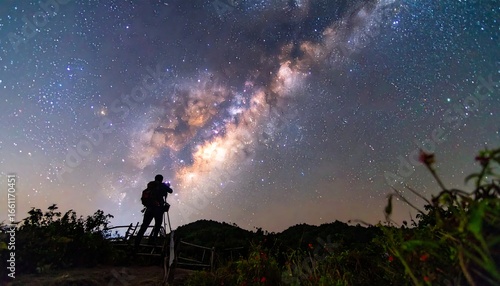 Obraz premium A photographer on a mountaintop captures the Milky Way