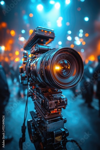 Fototapeta premium A photographer setting up their equipment, with people passing by in the...