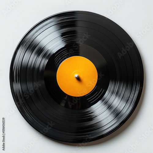 © tong2530, Obraz premium A photorealistic image of a classic vinyl record, with light reflections on its surface, on a white background
