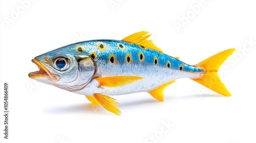 © niramol, Naklejka premium A photostock of sardines on a white background, raw and fresh.