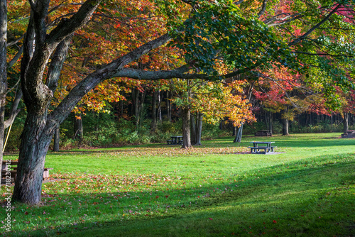© Richard Nantais, Naklejka premium A picnic area in the fall colors