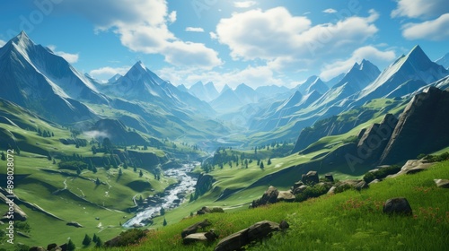 © Ghulam, Fototapeta premium A picture background with a wide area for text, highlighting mountains,