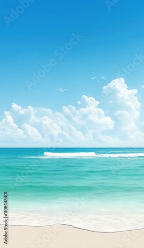 © iLegal Tech, Obraz premium a picture of a beach with a blue sky and white clouds