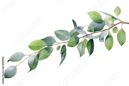 Naklejka premium A picture of a branch with vibrant green leaves against a clean white...