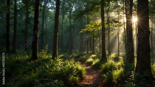 © TajHussain, Obraz premium A picture of a forest clearing, dappled in sunlight, where magic feels tangible ai_generated