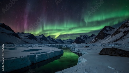 Naklejka premium A picture of a lone explorer crossing a crevasse-ridden glacier under the northern lights ai_generated