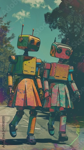 © K silver, Fototapeta premium A picture of two robots walking to school