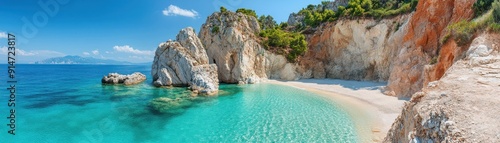 © kitidach, Fototapeta premium A picturesque beach with dramatic cliffs and turquoise waters