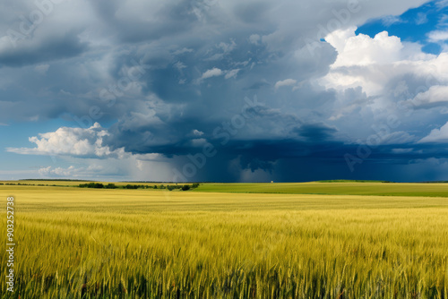 © Sved Oliver, Obraz premium A picturesque field under stormy skies closeup