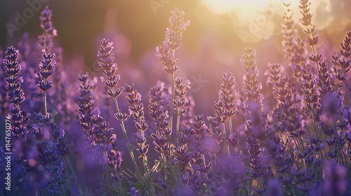 Naklejka premium A picturesque lavender field features endless rows of aromatic purple blooms...