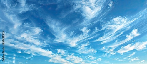 Fototapeta premium A picturesque sky with wispy white clouds, providing ample copy space for...