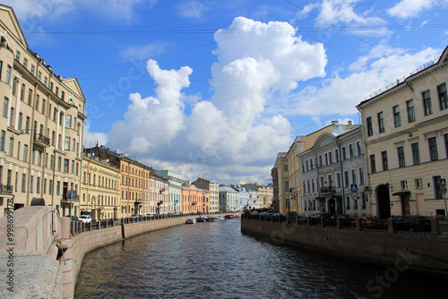 Fototapeta premium A picturesque street view along an embankment with historic buildings in a...