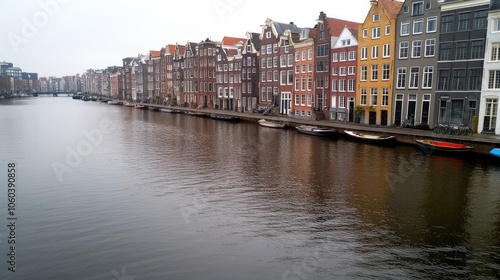 Naklejka premium A picturesque view of Amsterdam's charming canals and historic houses on a...