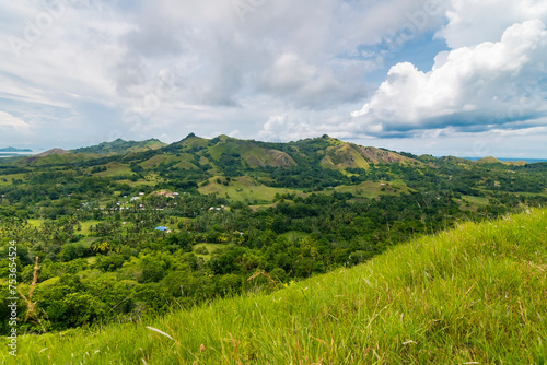 Fototapeta premium A picturesque view of Mabini, Bohol featuring rolling green hills, tropical...
