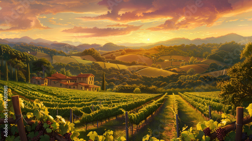 Naklejka premium A picturesque view of the Italian hillsides covered in vineyards