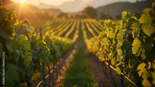 Fototapeta premium A picturesque vineyard with rows of grapevines