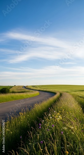 Obraz premium A picturesque winding road through a verdant summer landscape