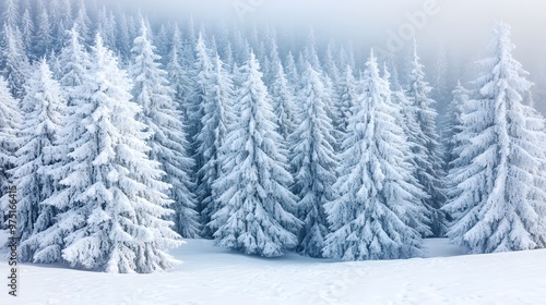 © simba kim, Naklejka premium A picturesque winter forest with a blanket of fresh snow, Generative AI