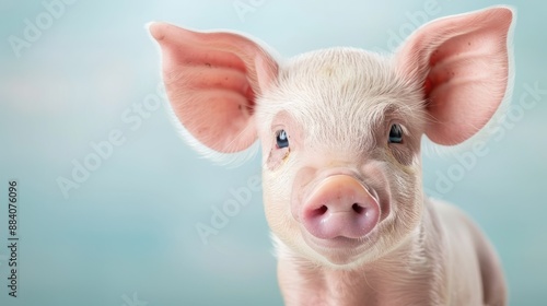 © Natthakan, Fototapeta premium A pig with pink ears and a pink nose is looking at the camera