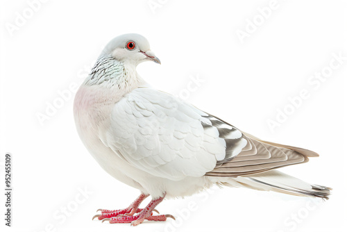 © Nam, Fototapeta premium a pigeon standing on a white surface with a red beak
