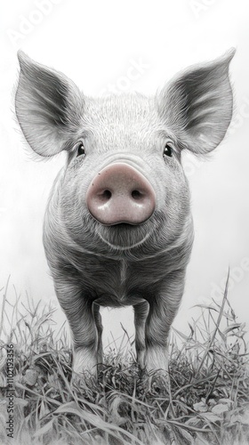 © novian, Fototapeta premium A Piglet Poses For A Striking Portrait Drawing