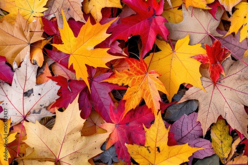 Obraz premium A pile of autumn leaves scattered on the grassy surface