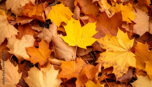 © Nashihal, Fototapeta premium A pile of autumn leaves with some yellow leaves in the middle