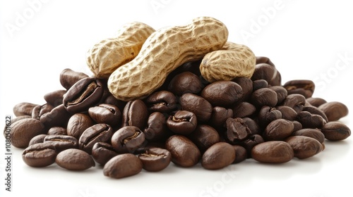 © Trionorejo, Naklejka premium A pile of coffee beans and peanuts, showcasing a blend of flavors and textures.