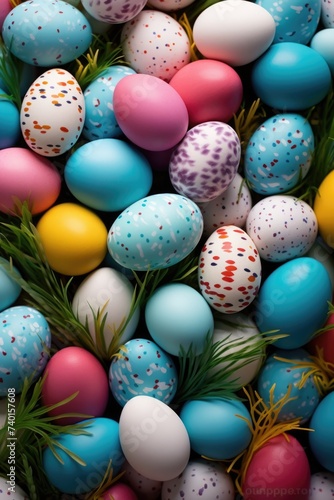 Obraz premium A pile of colorful Easter eggs with sprinkles. Perfect for Easter holiday...