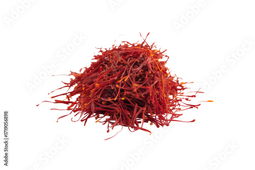 Naklejka premium A pile of dried saffron threads, a valuable spice with a rich red color and intense aroma. background removed