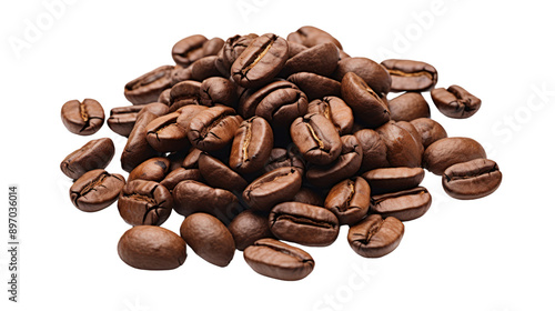 © Subin, Naklejka premium A pile of roasted coffee beans isolated on white background.