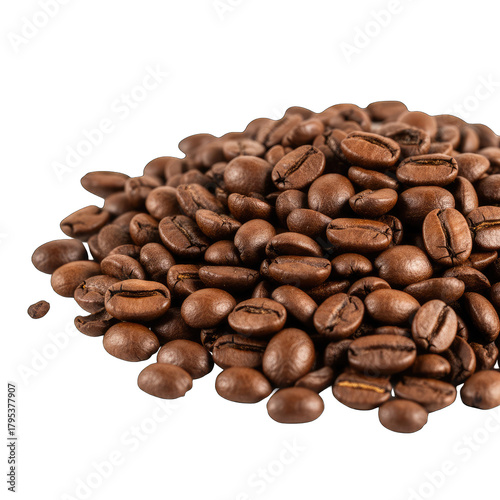 © kelpin, Naklejka premium A Pile Of Roasted Coffee Beans With Rich Brown Color And Smooth Texture Isolated On Transparent Background Soft Studio Lighting Capturing Aromatic Beverage Ingredient