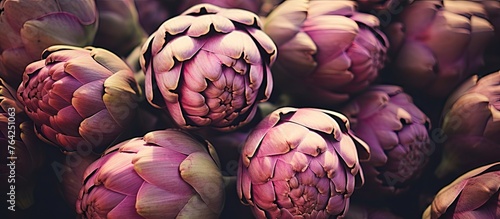 Fototapeta premium A pile of vibrant purple artichokes