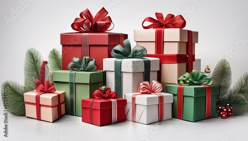 © pokku, Obraz premium A pile of wrapped presents for Christmas