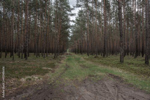 © smutnypan, Obraz premium A pine forest on a wet morning