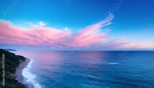 © luis, Fototapeta premium A pink and blue sky over the ocean