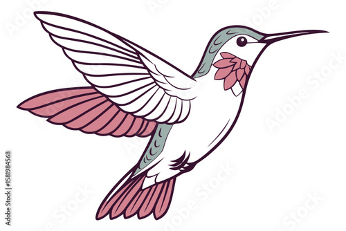 © Shanto, Obraz premium A pink and green hummingbird in flight, isolated on white