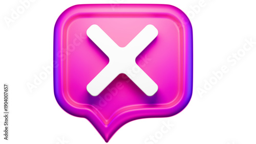 © Alexander Sulghin, Obraz premium A pink and purple "Error" or "Blocked" notification icon with a white cross, isolated on a transparent background. Dialog box. SMS notification.