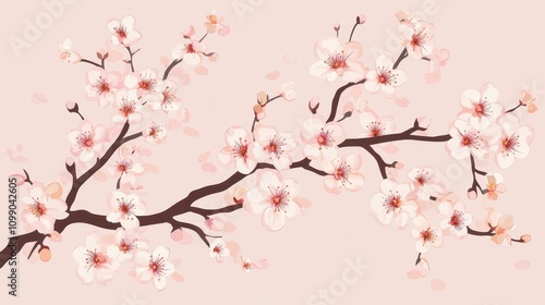 © ศุภมาส, Fototapeta premium A pink and white cherry blossom tree branch