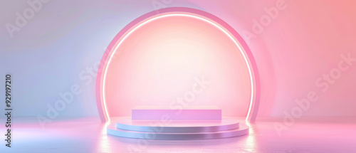 © SynthArt BWG, Obraz premium A pink and white stage with a pink and white background