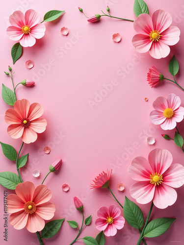 © fotoluigi868, Fototapeta premium A Pink Background Features 3d Beautiful Flowers That Are Blooming In A Stunning And Vibrant Display Of Natural Beauty Everywhere. 00002