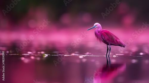 Obraz premium A pink bird with a lengthy beak stands in a body of water, backgrounded by a...