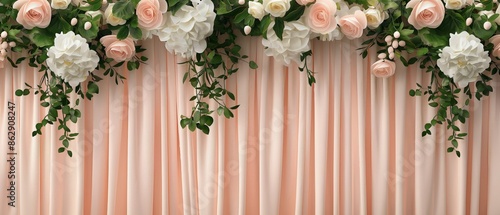 © Imaginary Capture, Fototapeta premium A pink curtain with flowers on it. Floral and silk background. Perfect for product design and presentation.